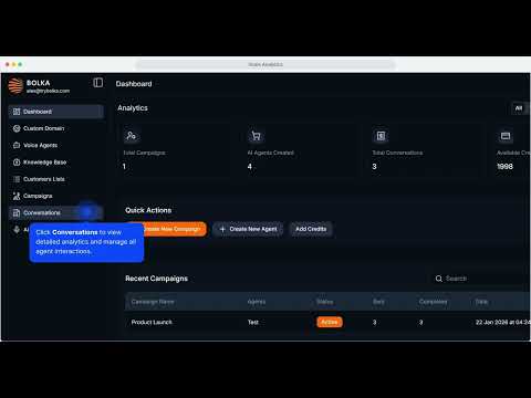 Step-by-step video guides to create voice agents, campaigns, knowledge bases, and deploy Voice Links and widgets on Bolka.