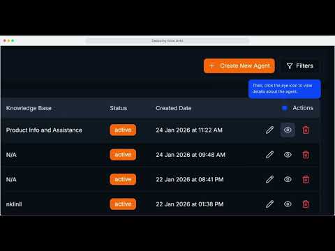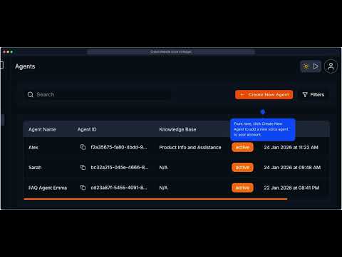 Step-by-step video guides to create voice agents, campaigns, knowledge bases, and deploy Voice Links and widgets.